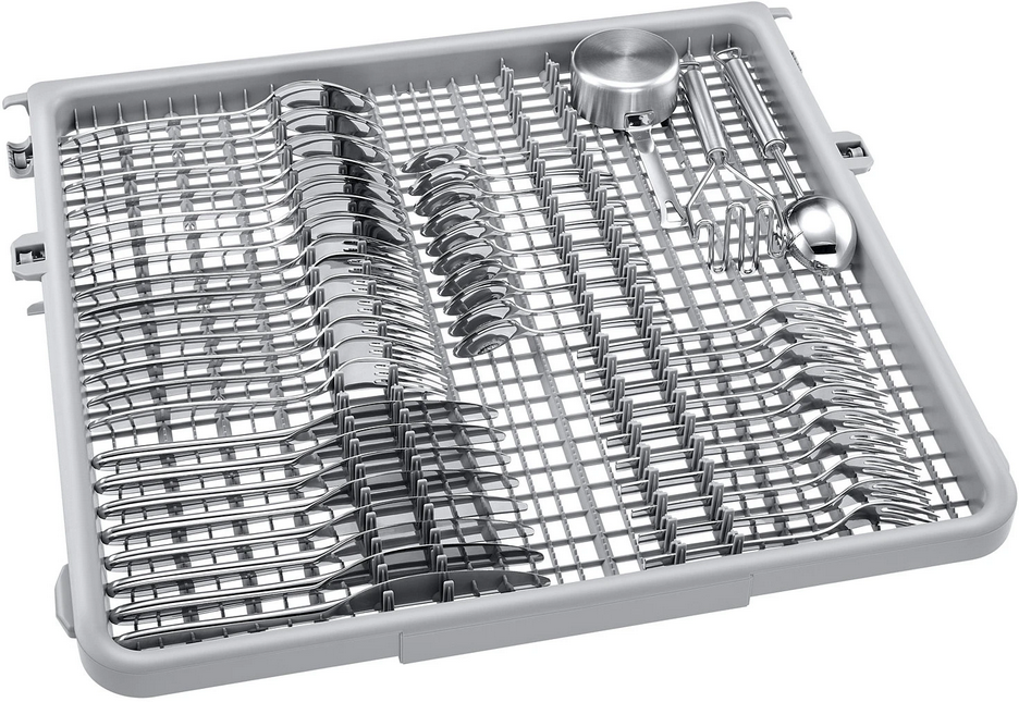 Praca zmywarki jest mało słyszalna. Dzięki temu możesz uruchamiać program mycia nawet nocną porą, nie martwiąc się, że odgłosy pracującej zmywarki zaburzą Twój sen. Producent zdecydował się zamontować w urządzeniu szufladę na sztućce zamiast zwyczajnego koszyka. Szuflada umieszczona jest nad górnym koszem, dlatego w dolnym jest więcej miejsca na naczynia. Do szuflady możesz też ładować długie akcesoria kuchenne, a nawet nieduże filiżanki. Funkcja opóźnienia startu pozwoli Ci ustawić czas rozpoczęcia zmywania naczyń. Dzięki niej będziesz mógł nastawić zmywarkę tak, aby zakończyła zmywanie naczyń tuż przed Twoim powrotem do domu. Jedną z najbardziej przydatnych funkcji tej zmywarki jest połowa załadunku. Dzięki niej możesz nastawić program zmywania nawet wtedy, gdy zmywarka zapełniona jest zabrudzonymi naczyniami tylko do połowy. Nie musisz się przy tym zamartwiać o wyższe rachunki za wodę i energię, gdyż urządzenie samodzielnie dobierze ilość wody i prądu do ilości naczyń.